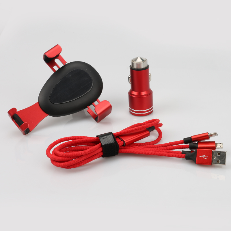 套装一:重力联动车载支架*1      精编一拖三数据线*1     安全锤车充*1